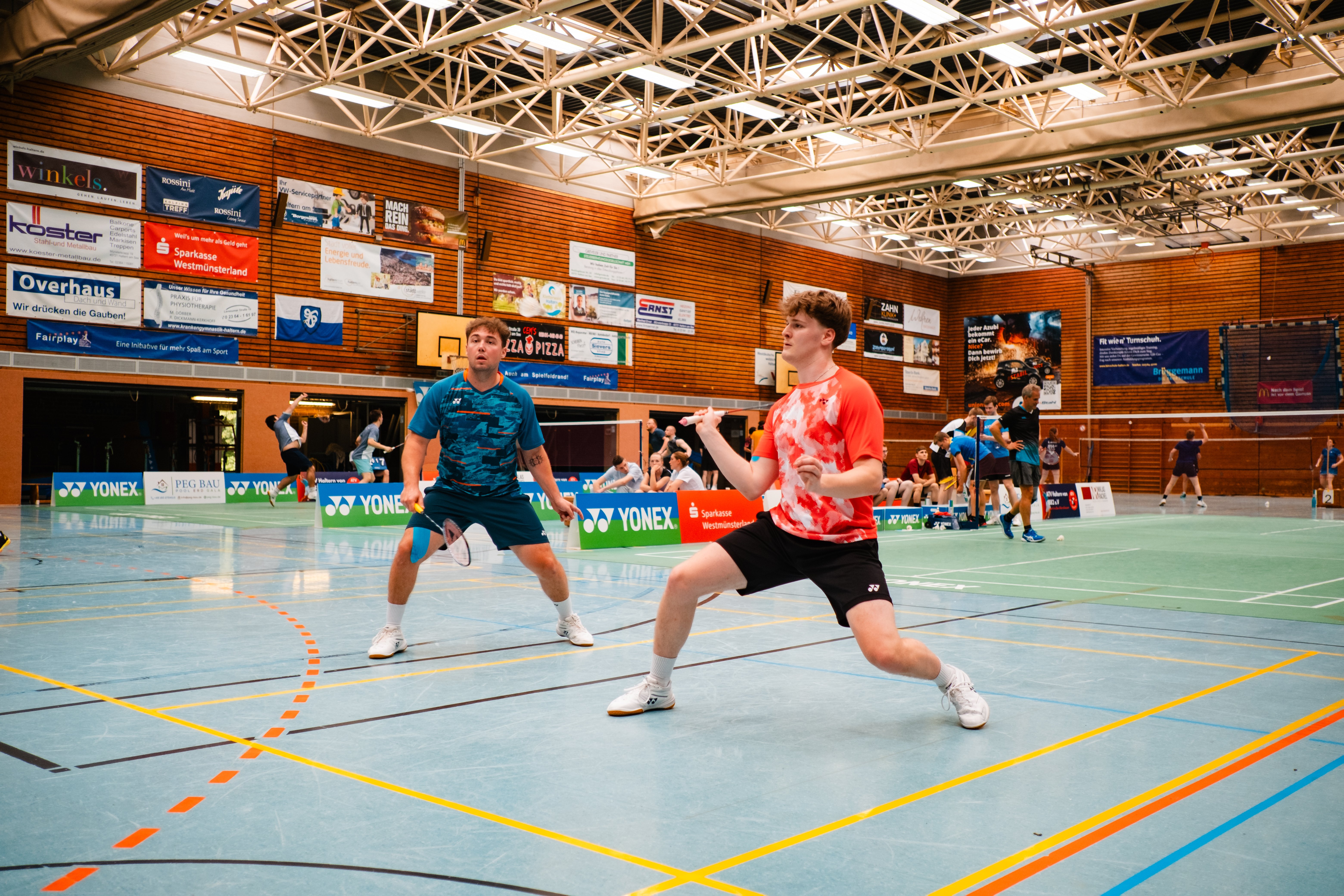 Wir bauen wieder 2 Yonex Courts auf und haben insgesamt 8 Spielfelder. Die Mixed werden komplett am Samstag und die Doppel ausschließlich am Sonntag gespielt. Die Einzel werden sich vorraussichtlich über beide Tage erstrecken, in der Regel wird Samstags bis zum Einzel-Viertelfinale gespielt.